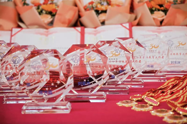 朱天旭副校长宣读了表彰名单,李凤营校长、韩丽华书记为获奖者颁发了荣誉证书与奖杯。现场掌声如潮,充满敬意与感动。之后,“三十年教龄教师”代表邹霖娜老师深情回顾了她三十年从教经历,言语朴实却情深意重,她表示将继续陪伴学生成长、助力青年教师圆梦,这份执着与温暖引起强烈共鸣。